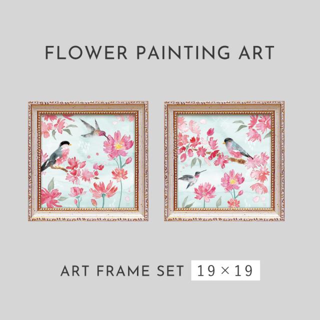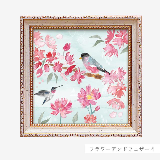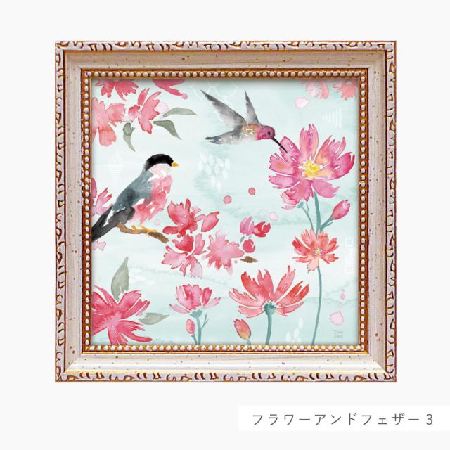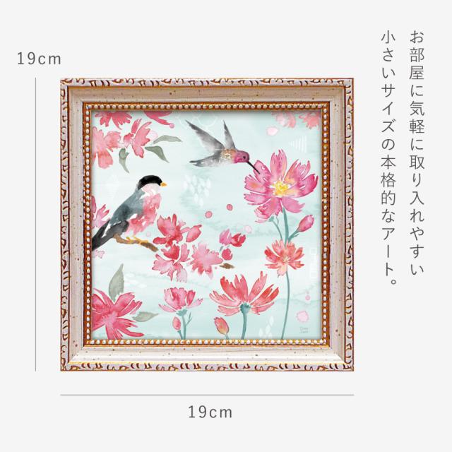 アートパネル 花 19×19cm 小さい アート パネル 壁掛け 額入り フレーム付き インテリア 花の絵 おしゃれ モダン 玄関 ディーナ ジューン フラワーアンドフェザー