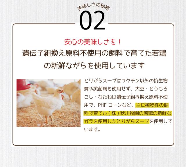 原材料:とりがらスープ(鶏骨(国産)食塩)、食塩、有機醤油(大豆・小麦を含む)、砂糖、有機たまねぎ、有機にんじん、有機キャベツ、有機セルリー、香辛料
