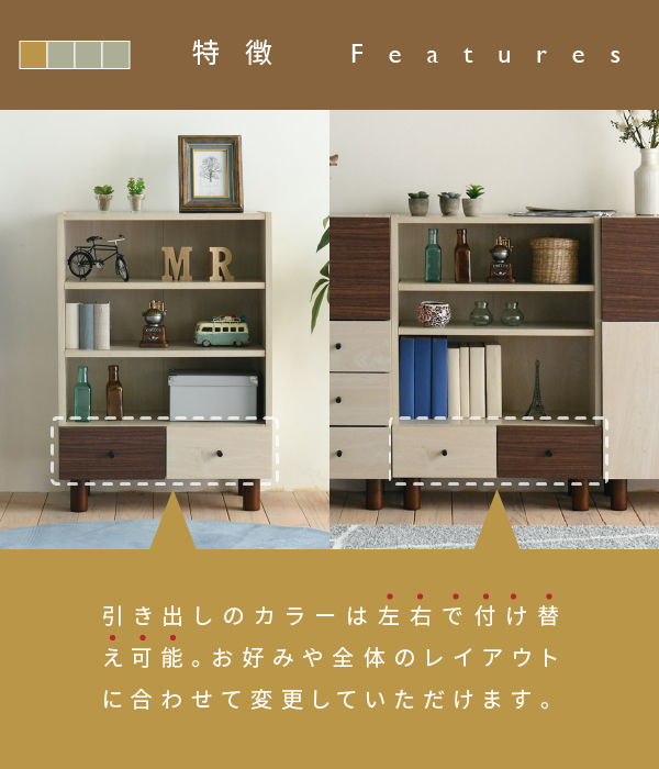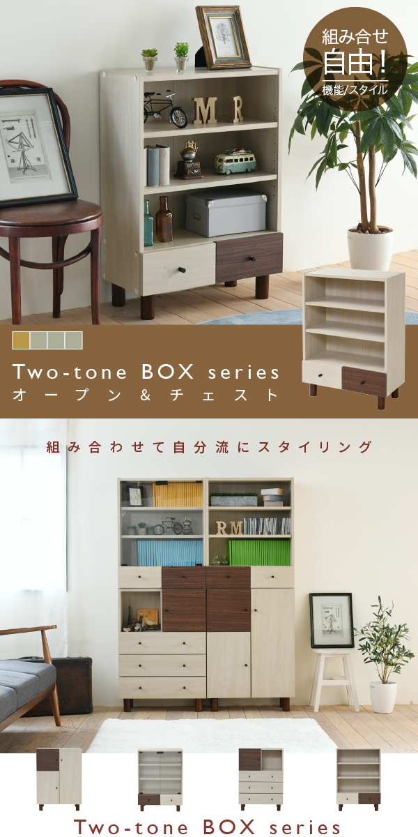 TWO TONE BOX トゥートーンボックス オープン&チェスト (チェスト リビング収納 ディスプレイ オープン ラック カントリー 北欧 ブラウン ナチュラル 壁面収納 ツートン おしゃれ)