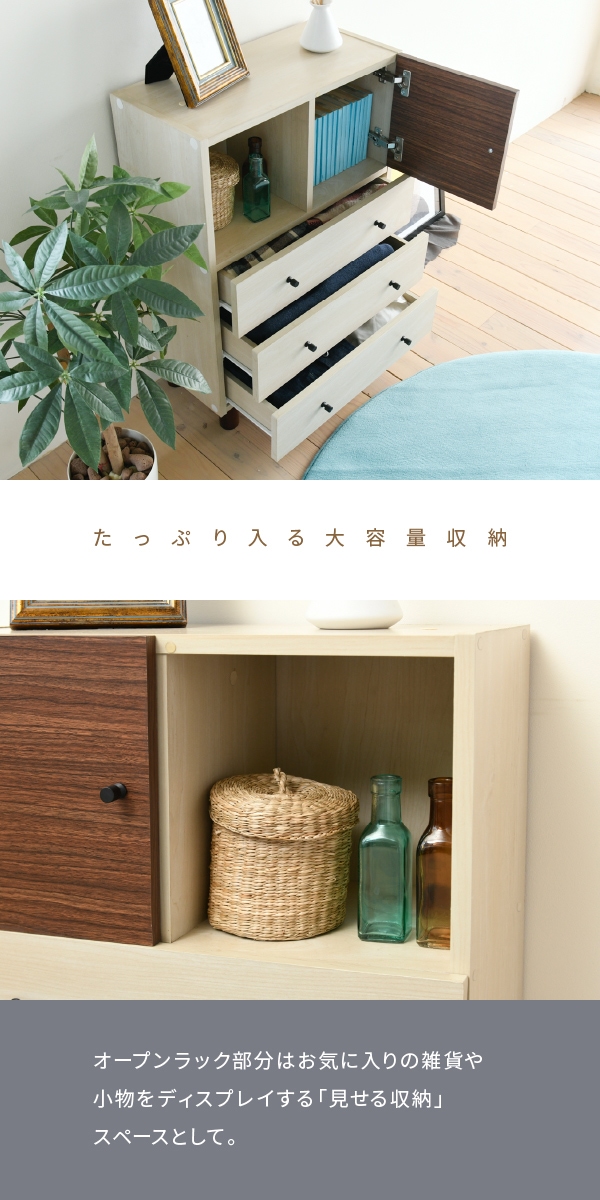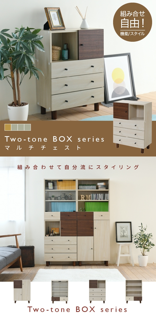 TWO TONE BOX トゥートーンボックス マルチチェスト (チェスト リビング収納 キャビネット リビングボード ラック カントリー 北欧 ブラウン ナチュラル 壁面収納 ツートン おしゃれ おすすめ)