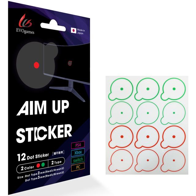 FPS エイム 向上 グッズ エイムアップステッカー ゲーミングモニター 照準 ターゲットシール 糊不使用 貼り直し 可 日本製 エイムシール ドットシール TPS シューティングゲーム PS5 PS4 Switch PC Xbox 対応 4種12枚 EVOgames