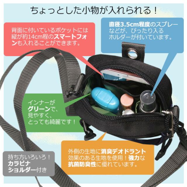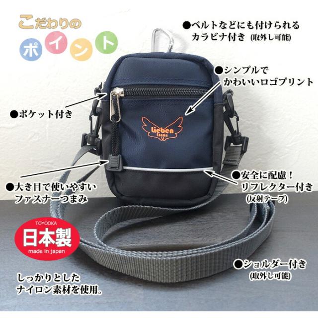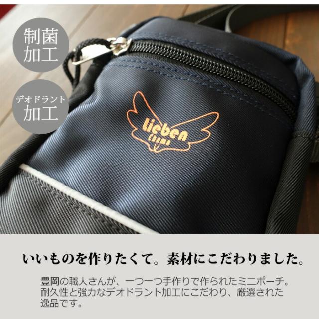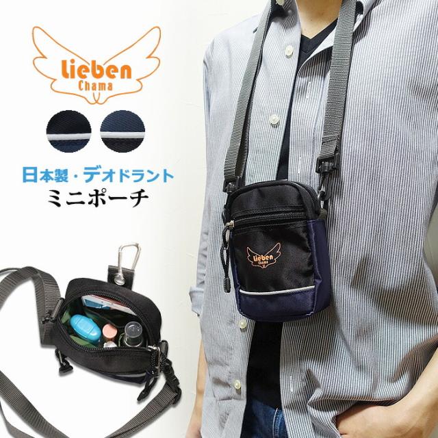 ミニポーチ 325 デオドラント 制菌 リーベン カラビナ付き ポーチ 日本製 豊岡 cr-325 ショルダーバッグ ミニショルダー アウトドア ボトルホルダー 貴重品入れ リフレクター 反射 男女兼用 メール便送料無料