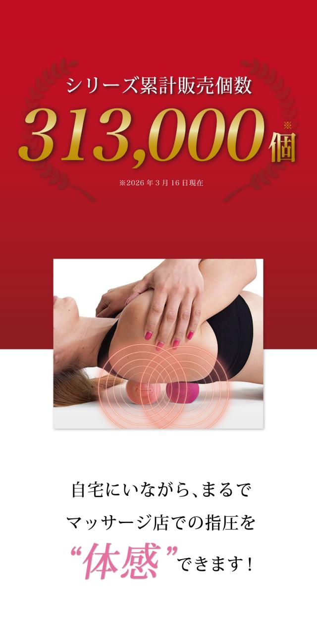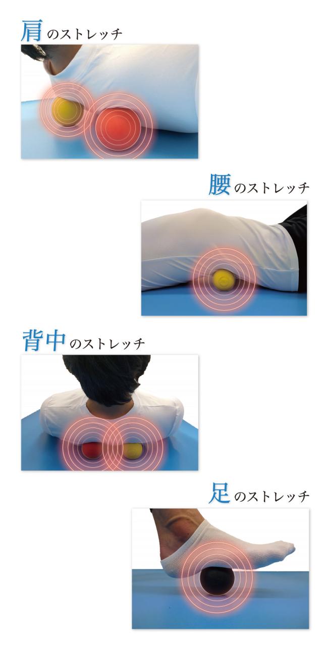 マッサージボールを使う、主な要因は日常や仕事での体のコリを解消すること、 またスポーツ時の疲れを解消してくれることではないでしょうか? マッサージ店などの指圧によりこれらの疲れやコリは解消できます。 しかし普段からマッサージ店に通うことは時間面においても金額面においてもなかなか難しいと思います。 できる限り自宅でマッサージ店での指圧効果を得る為に当社ではスポーツ工学に基づいて2つのポイントを重視した商品を開発致しました。
