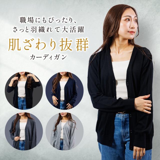 カーディガン レディース 肌ざわり抜群のカーディガン 学生 オフィス 看護師 ニット ポケット付 事務服 制服 長袖 秋冬 企業 会社 ユニフォーム 大きいサイズ 小さいサイズ 前開き ol 法人サービス 黒 紺 灰 ネイビー グレー ライト