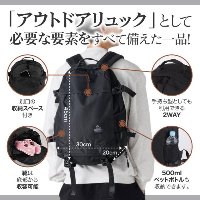 - 1.『どんなシーンでも使用できる』通勤、通学はもちろん、アウトドアまで使用できるカジュアルリュック。