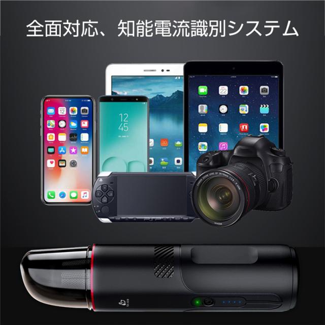 【モバイルバッテリー機能】5V 2.1AのUSB出力ポート搭載、スマホ、カメラ、タブレット、KINDLE、GPS、PSP、そのほかUSB機器への充電をサポートします。適用電流を自動的に検知でき、最適な電流で安定充電をできます。