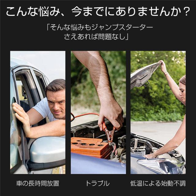 【安全保護&PSE認証】PSE認証済み製品です。高品質のリチウムバッテリーとスマートクランプを採用することにより、安全保護機能を大幅に向上しました。不当操作とサージ電圧などによる短絡/逆接続/過放電/過電流/逆電流/逆極性/過充電などを防止して、本製品やカーバッテリーや、充電対象デバイスを保護できます。