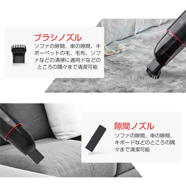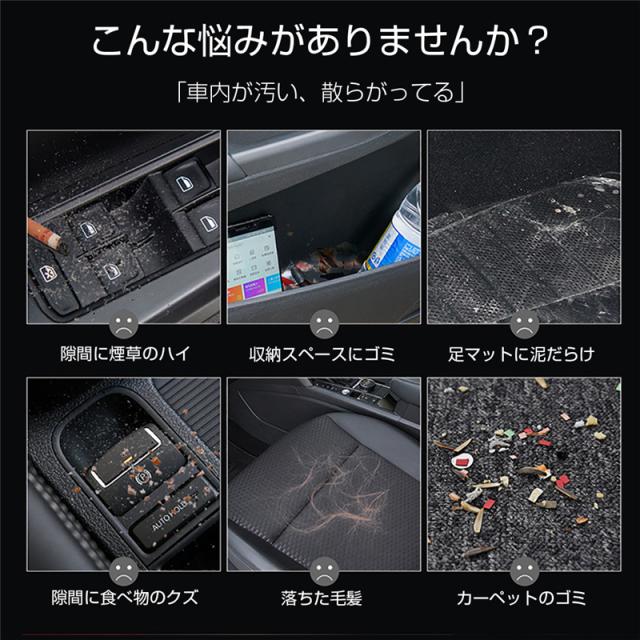 【ハンディクリーナー】車輌の強制始動に使うだけではなく、カークリーナーとしても役に立ちます。コンセント不要なので、利用はとても便利です!吸引補助用のノズル2つがつきます、どんなに小さいスペースでも簡単に吸引できます。足マットやカーペット、座席シートの食べかす、コップ置き場などの凹箇所をきれいに掃除できます。