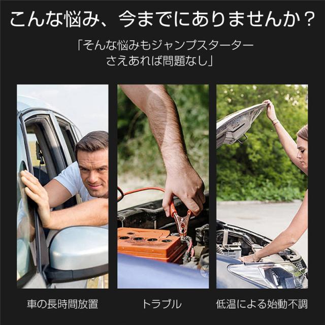 【12V車用ジャンプスターター】12V小型ポータブルジャンプスターターはピーク電流が1200Aに達して、6.5Lまでのガソリン車/5.5Lまでのディーゼル車に利用できます。カーバッテリーの+/−電極にジャンプスターターケーブルのクランプを正しく接続すれば、車を簡単に始動できます。