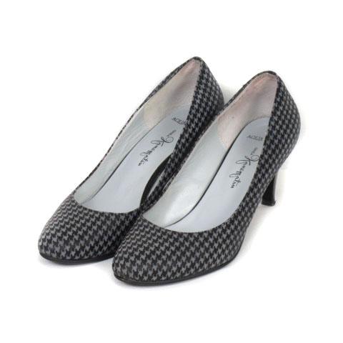 【中古】銀座かねまつ GINZA Kanematsu AQUA BELL パンプス アーモンドトゥ 千鳥格子 23 グレー 黒 レディース