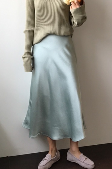 ハイウェストスカート ミモレ丈 膝下 無地 グリーン ピンク 秋 仕事 フレア Aライン 可愛い シンプル 10代 20代 30代 お出かけ デート 上品 きれいめ 清楚 大人女子 とろみ OL カジュアル フェミニン トレンド