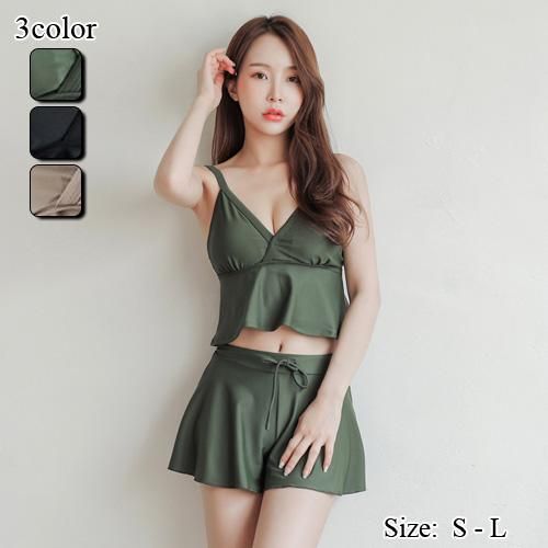 【グラシア】 水着 ビキニ レディース ビーチウェア スイムウェア 流行 海 プール フレアキャミ ビキニ ショートパンツ グリーン ブラック カーキ S M L