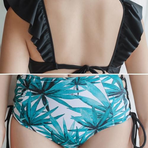気になるお腹まわりをカバーするハイウエストショーツは、サイドレースアップからの肌見せで大人な雰囲気に♪