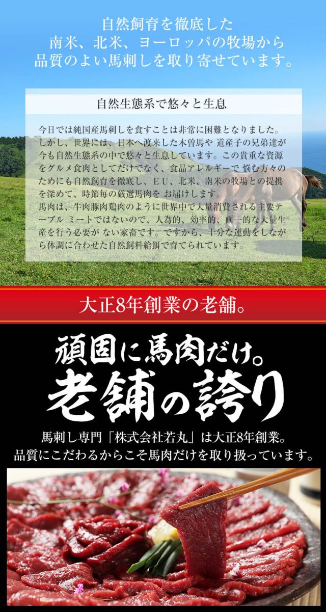 | 原産国 | 馬ハラミ(ウルグアイ又はメキシコ又はブラジル又はアルゼンチン)、しょう油(小麦、大豆)、砂糖、玉ねぎ、ニンニク、塩、ごま油 |