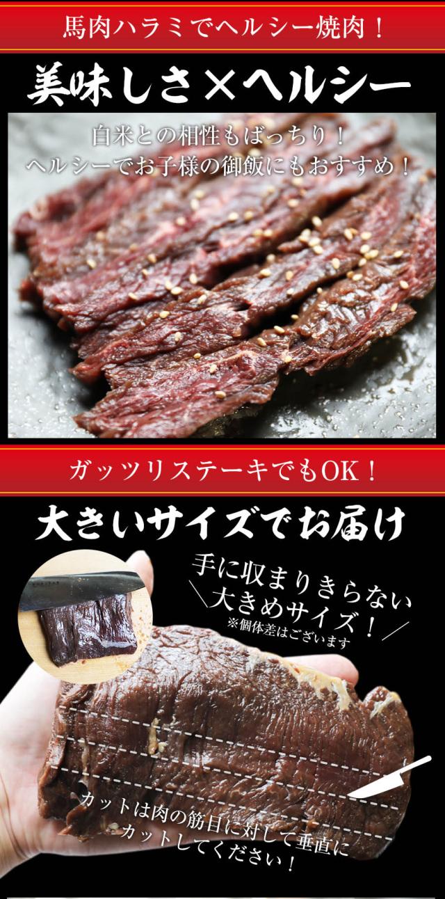 | 内容量 | タレ漬け馬ハラミ焼肉用 500g |