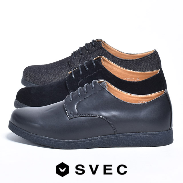 SVECシューズ メンズ スニーカー 革靴 皮靴 ダービーシューズ オックスフォードシューズ ポストマンシューズ 短靴 短ぐつ 軽い 軽量 スエード スウェード デニム プレーントゥ 靴 シューズ ブラック 黒 シュベック