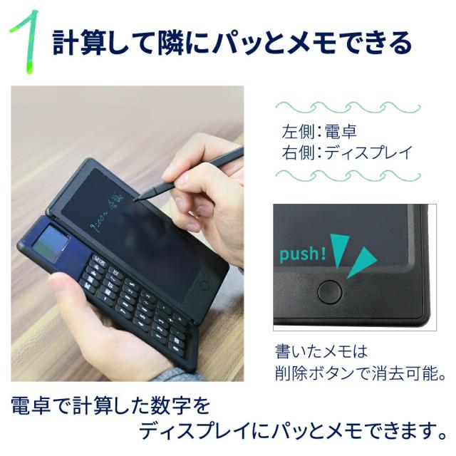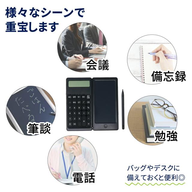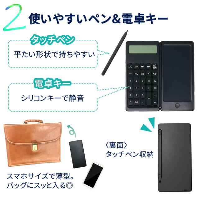 電卓/電子/電子メモ/デジタルメモ/メモ/ミニ/コンパクト/ミニ電卓/コンパクト電卓/ペン/タッチペン/専用ペン付き/持ち運び/携帯/携帯電卓/持ち運び電卓/軽量/薄型/2way/シリコン/シリコンテンキー/静音/収納/タッチペン収納/会議/備忘録/筆談/勉強/電話/バッグ/デスク/便利/便利アイテム/便利グッズ/CR1120/CR1220/ディスプレイ/計算/エコ/エコロジー/パッド/電子メモパッド/メモ帳/電子メモ帳/二刀流