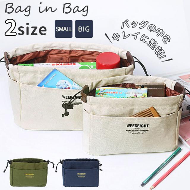 バッグインバッグ 自立 通販 大きめ ビッグサイズ 小さめ スモールサイズ 巾着タイプ キャンバス 帆布 薄型 スリム 整理 整頓 仕分け 小分け シンプル 男女兼用 かわいい ナチュラル 収納 鞄 バックインバック バッグオーガナイザー バッグ用アクセサリー