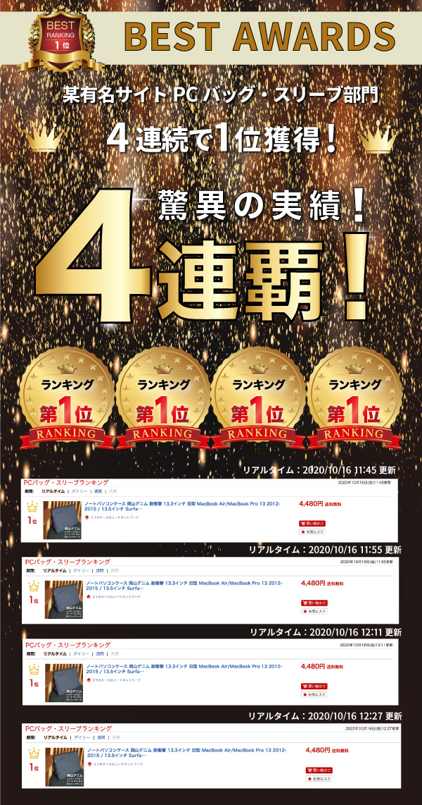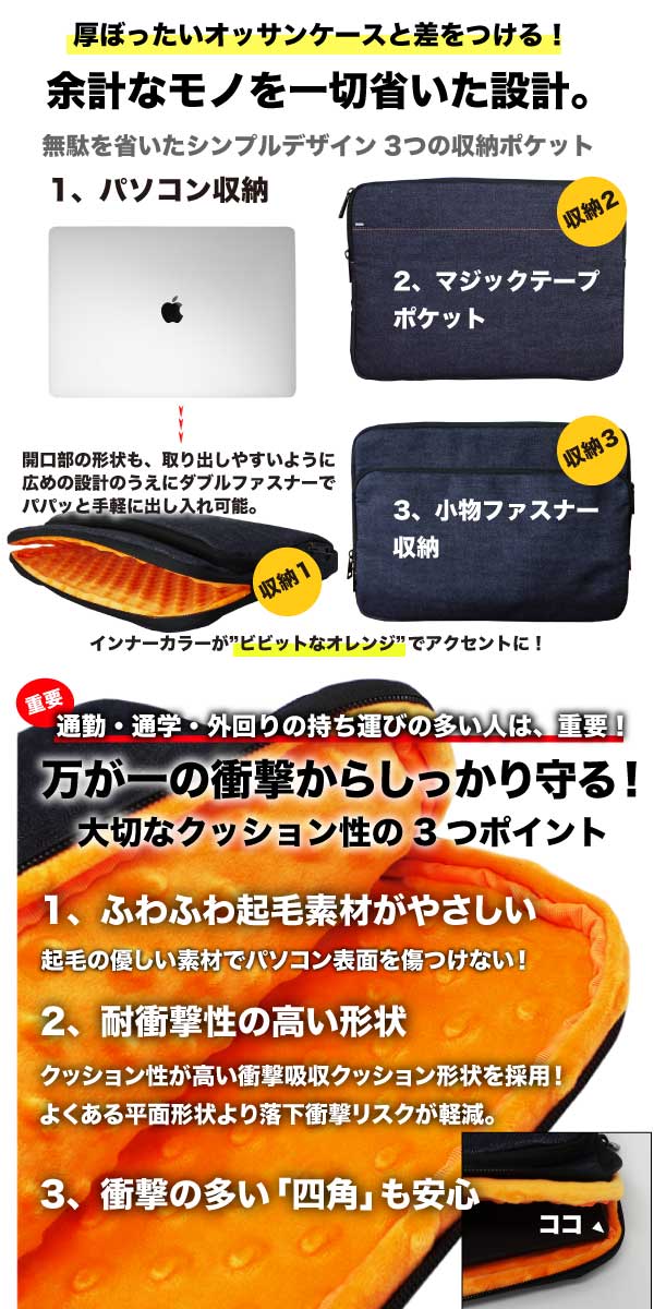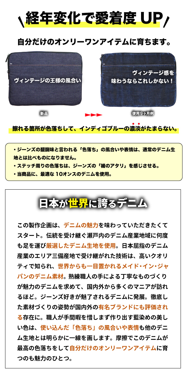ノートパソコンケース 日本が誇るデニム 耐衝撃 13.3インチ 旧型 MacBook Surface 対応 13 13.5 ノートPC パソコンケース PCケース
