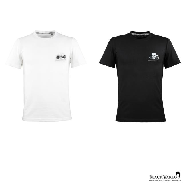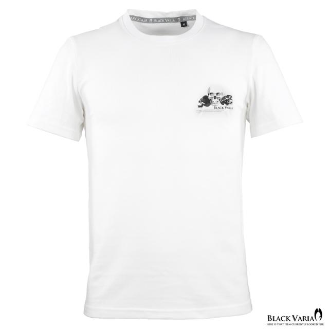 メール便可/1枚まで Tシャツ 半袖 クルーネック スカル ドクロ ワンポイント 丸首 メンズ スリム 細身 mens(ホワイト白) crzkk067