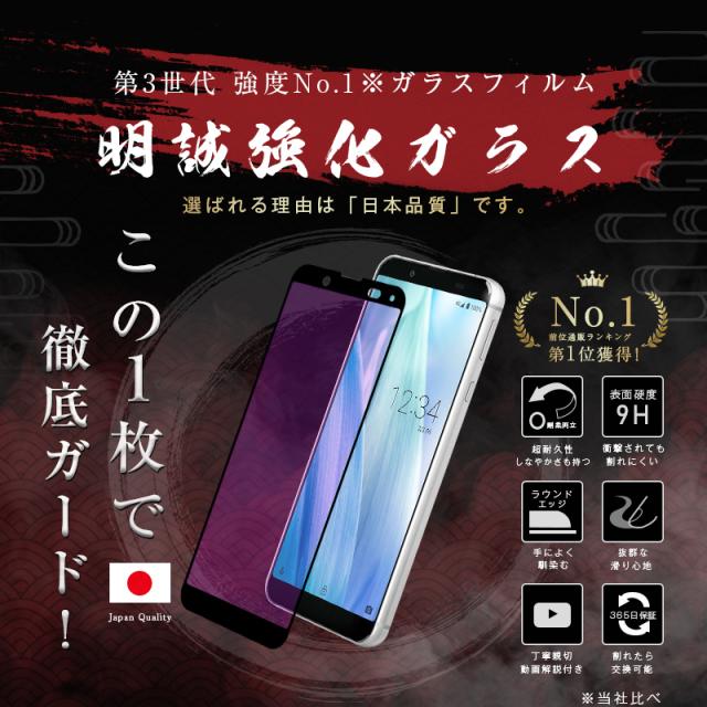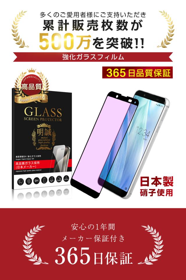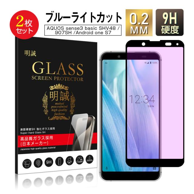 【2枚セット】AQUOS sense3 basic SHV48 / 907SH / Android one S7 ブルーライトカット 強化ガラスフィルム 画面保護 ガラスシート
