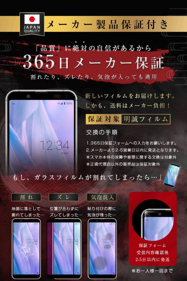 ・液晶画面に当たる部分は硬度9H強化ガラスフィルムで外部の衝撃からしっかり守ってくれます。