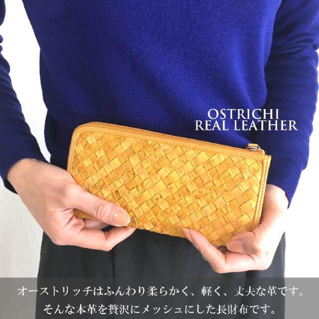 アウトレット 長財布 レディース メンズ L字ファスナー オーストリッチ 本革 編み込み 薄マチ 訳あり 財布 メッシュ 軽い L字 薄型 スリム おしゃれ カード収納 レザー 駝鳥 革 軽量 薄い 機能的 大人 上品 男性 女性 人気 風水 母の日 ギフト 送料無料