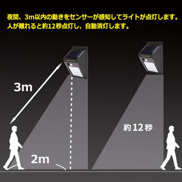 ■近くに街灯や灯りがある場所では、センサーが感知し点灯しません。設置し場所を変えてご使用ください。