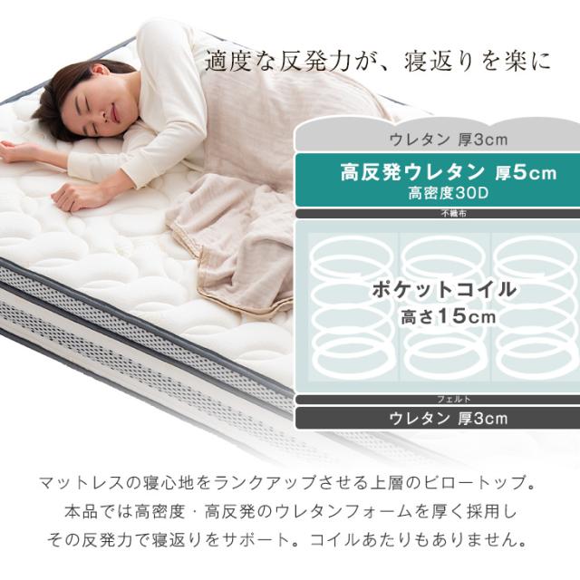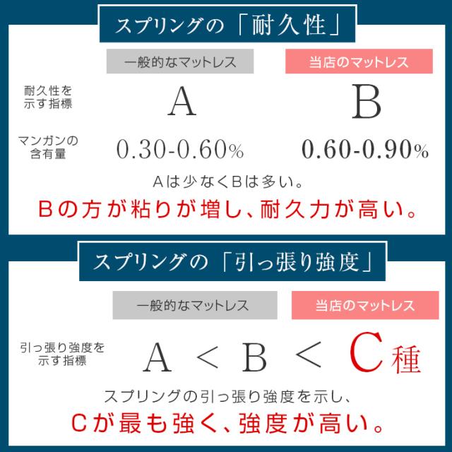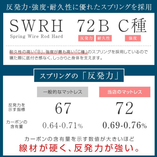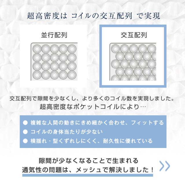 | 表・裏面:テンセル生地 メッシュ部分:ポリエステル100% 内部:ポケットコイルスプリング |