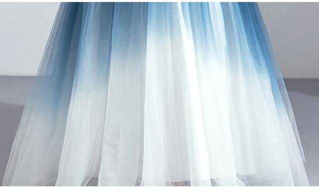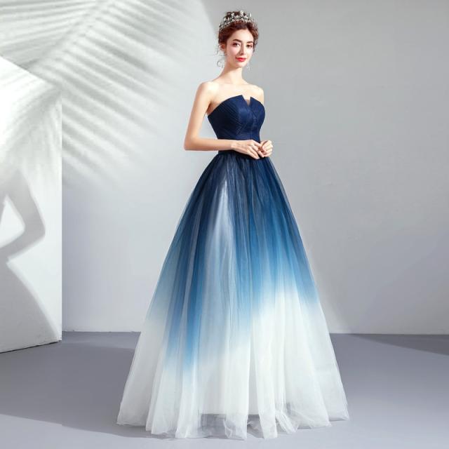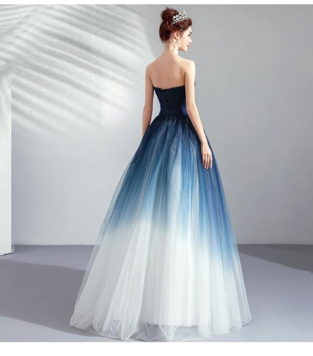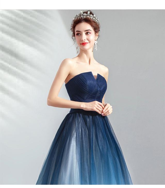 グラデーション ロングドレス パーティドレス ワンピ フレアースカート ビスチェ ネイビー 小さいサイズ 大きいサイズ 二次会 発表会D192
