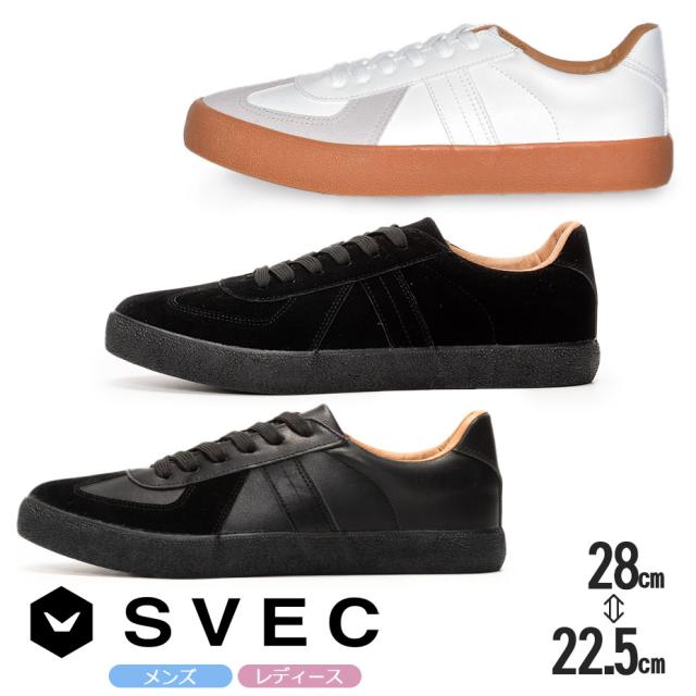 SVEC スニーカー 3E相当 EEE ユニセックス 通勤 通学 アウトドア フェス きれいめ 普段使い ジャーマントレーナー ホワイト スエード ブラック 男女兼用 メンズ レディース 女性 靴 シューズ シュベック ブランド SPS028-19