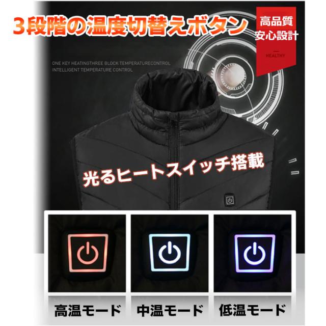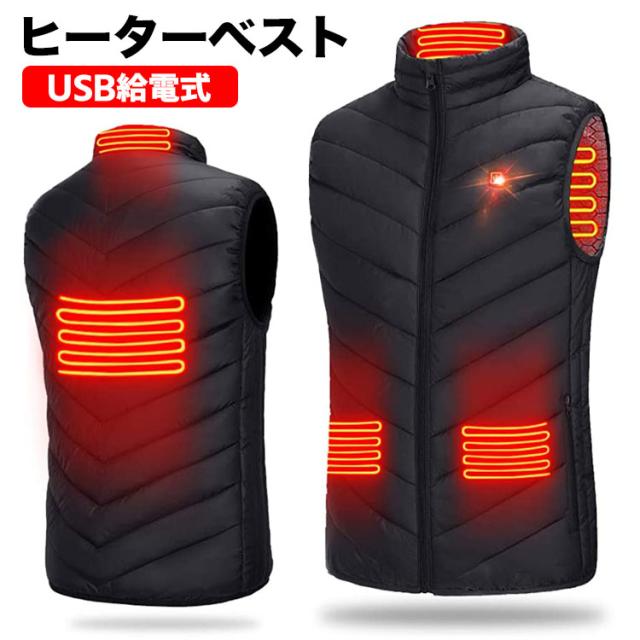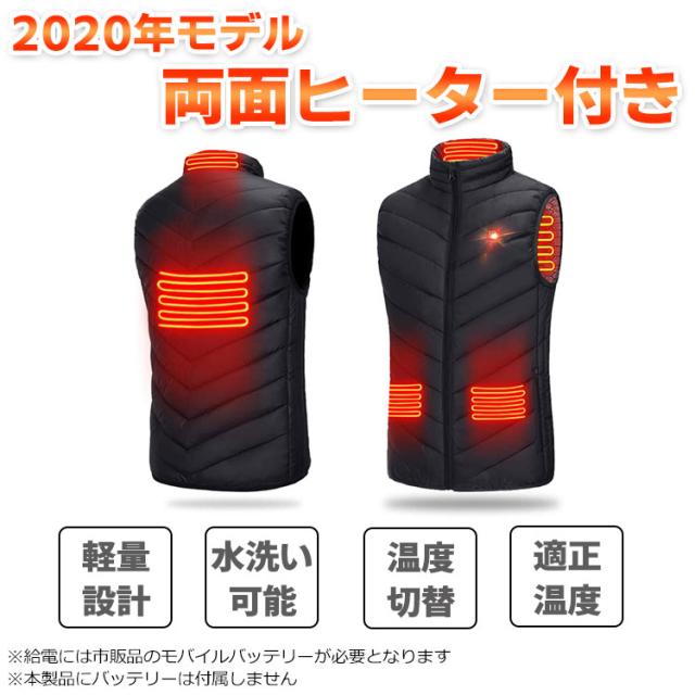 電熱ベスト ヒーターベスト 2020 ヒーター内蔵ベスト ヒーター4枚内蔵 メンズ レディース ヒートベスト USB給電 バッテリー給電 3段温度調整 防寒ベスト