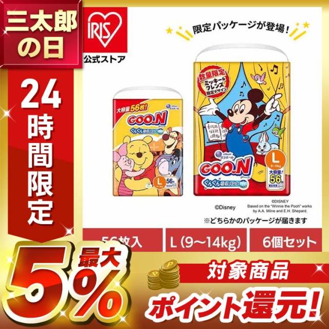 おむつ グーン プラス[6個セット] グーン まっさらさら通気 パンツ Lサイズ (9〜14kg) 336枚(56枚×6) 男女共用 大王製紙 大王製紙 おむつ キャラクター ベビー 赤ちゃん 通気 GOO.N グ〜ン 紙おむつ 赤ちゃん用品 送料無料