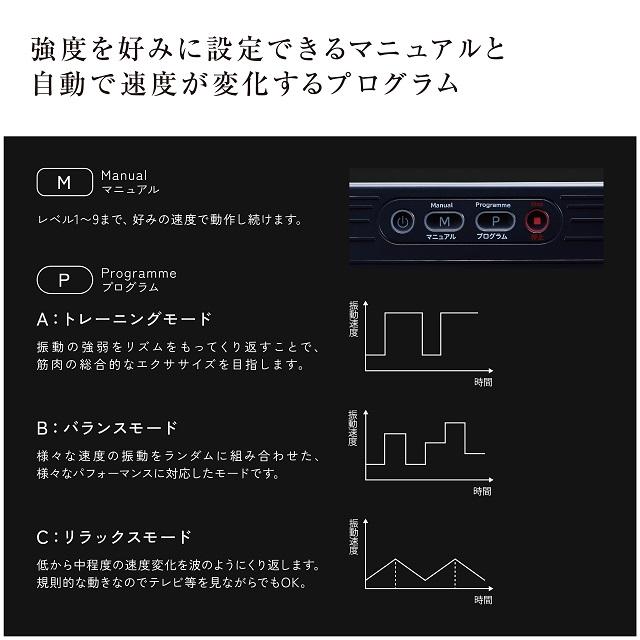 マニュアルでの操作も可能。 レベル1から9まで、好みの速度で動作し続けます。