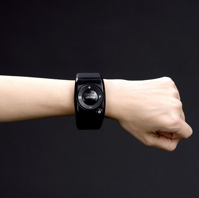 エクササイズ中でも操作がしやすいブレス型ワイヤレスリモコン付属。