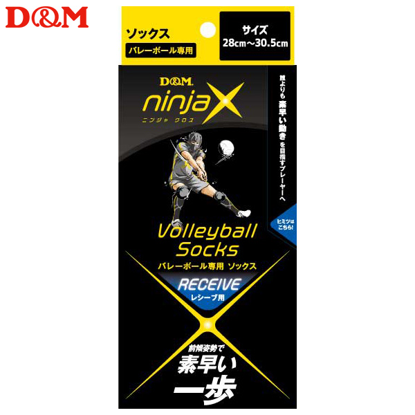 (パケット便送料無料)D&M ninjaX バレーボールレシーブ ソックス(1ペア入り)#109172 L(28.0-30.5cm)