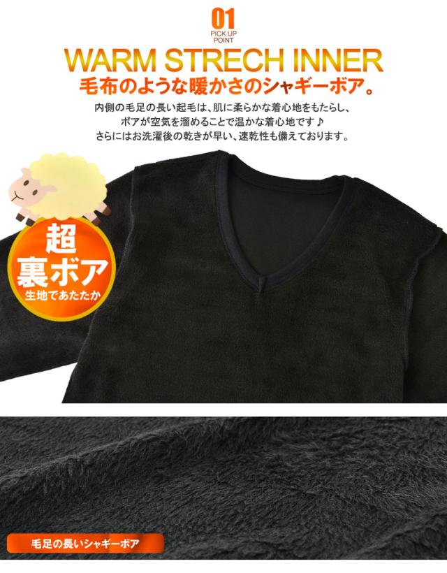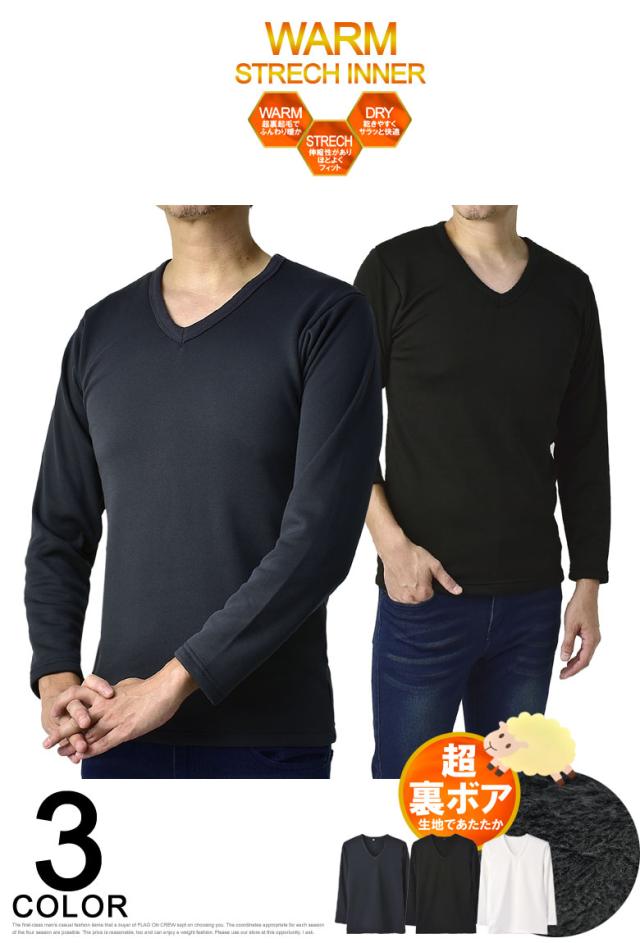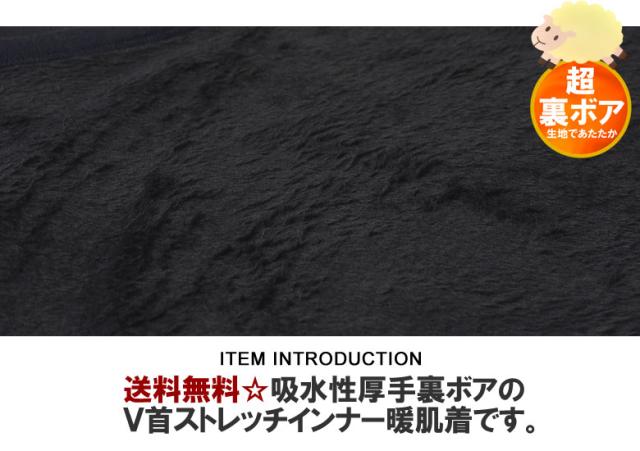 送料無料☆吸水性厚手裏ボアのV首ストレッチインナー暖肌着です。