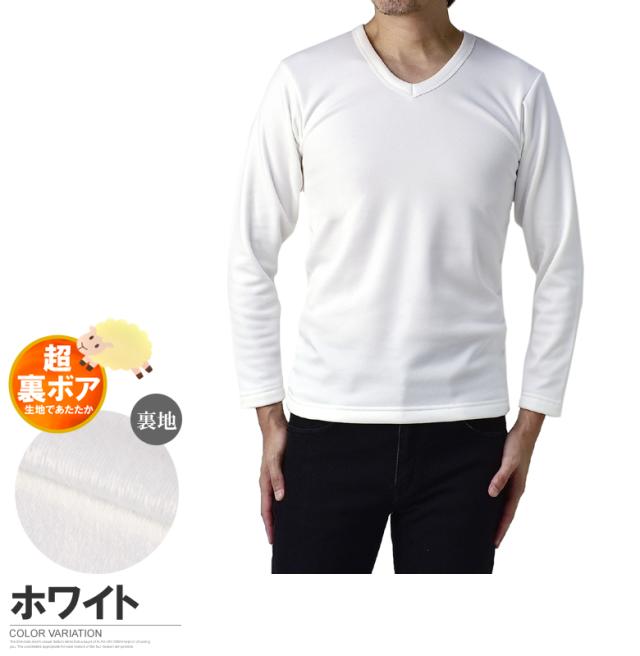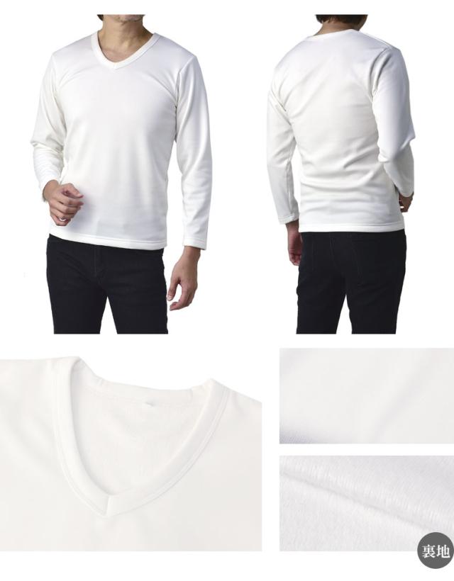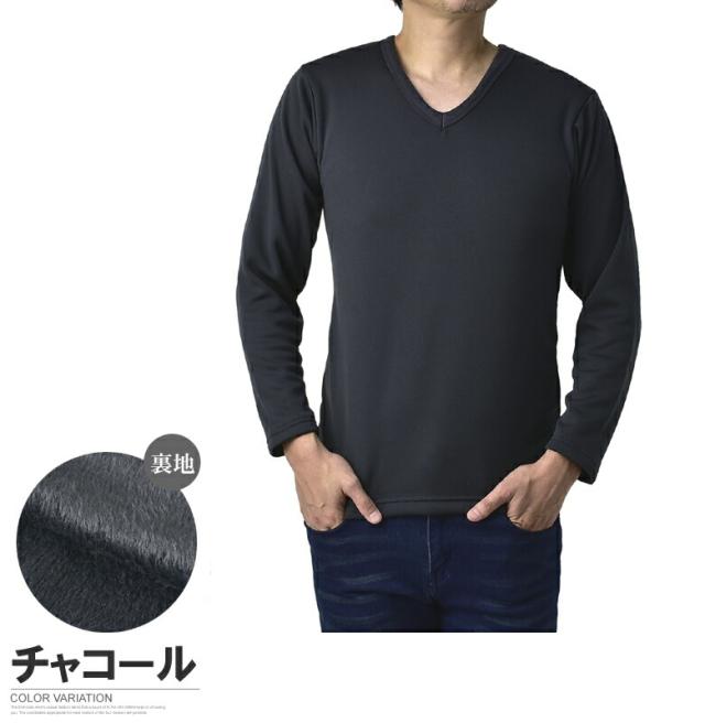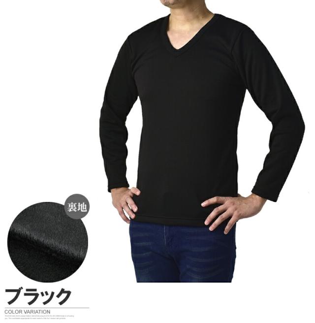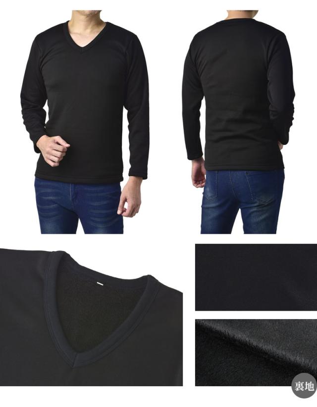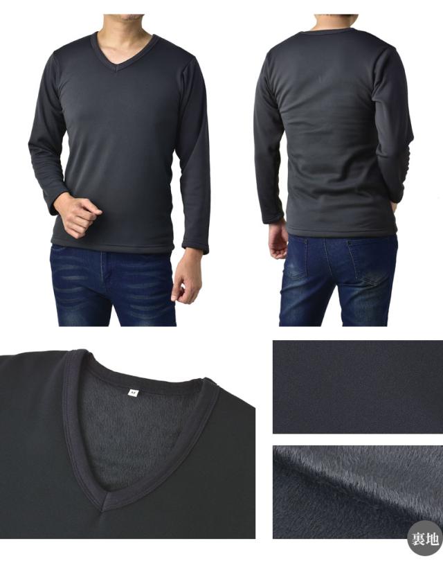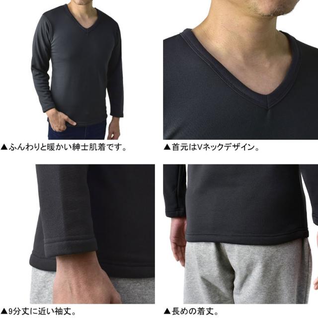 毛布のような肌着 メンズ Vネックインナー 裏ボア 超厚手 裏起毛 Tシャツ 長袖 9分袖 アンダーウェア 下着【E3W】【パケ1】【A】