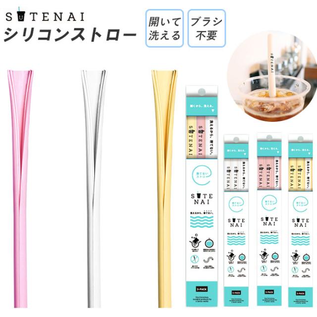 ストロー エコ 通販 繰り返し シリコン シリコンストロー SUTENAI ステナイ 洗える マイストロー 洗いやすい ブラシ不要 BPAフリー 食洗機OK おしゃれ かわいい シンプル カットできる 食器