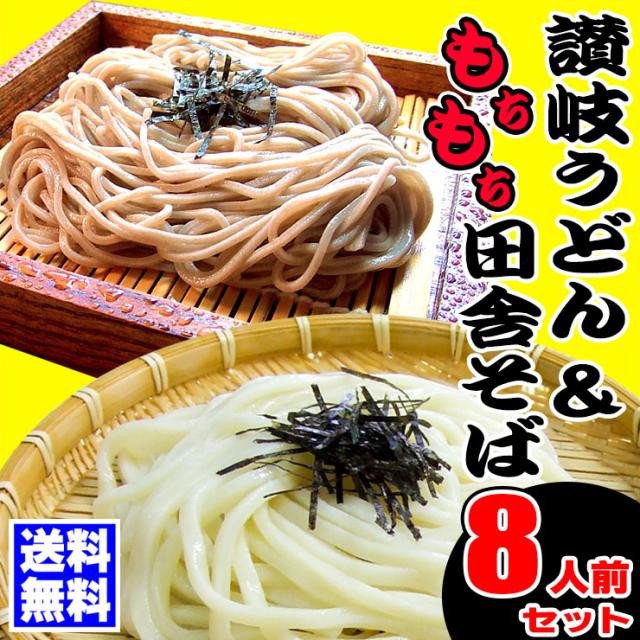 【送料無料】純生讃岐田舎そば&金福純生讃岐うどん8人前セット
