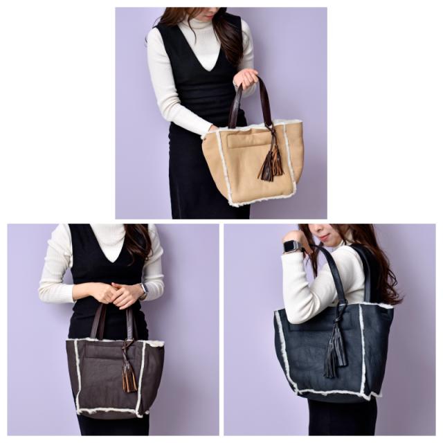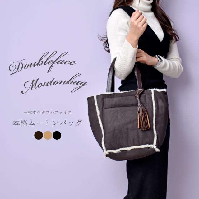 ムートンバッグ レディース Wフェイス 一枚革 本革 トート ファーバッグ 軽量 大容量 レザー 羊革 軽い 多収納 カジュアル きれいめ 大人 女性 婦人 通勤 普段使い 旅行 毛皮 革 カバン 茶色 黒 ブラック 40代 50代 60代 人気 母の日 ギフト 送料無料