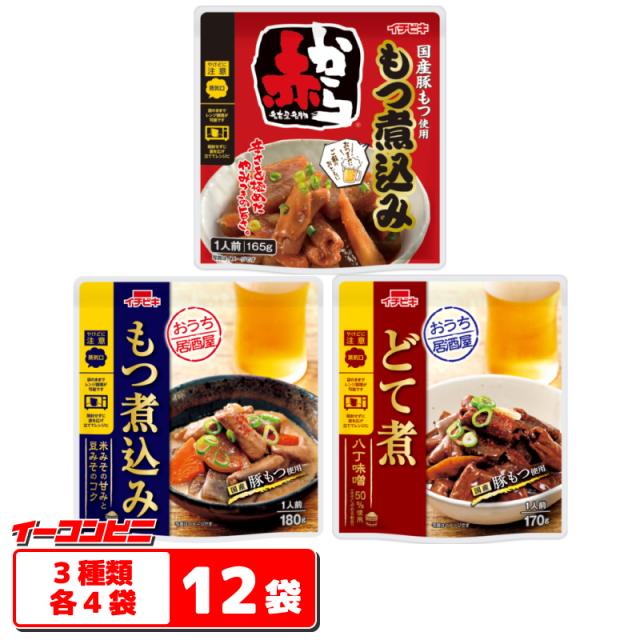イチビキ おうち居酒屋 もつ煮込み・どて煮・赤からもつ煮込み 165〜180g 3種各4袋セット(計12袋) レンジ対応 レトルトパウチ