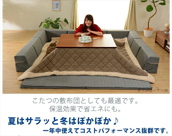 大満足なふかふかラグ コーナーラグマット M 190×190cm 送料無料 クッション付きラグマット 厚手 こたつ用敷き布団 こたつ用ラグマット 背もたれ付き ふかふか ウレタン 日本製 カバー付き 正方形