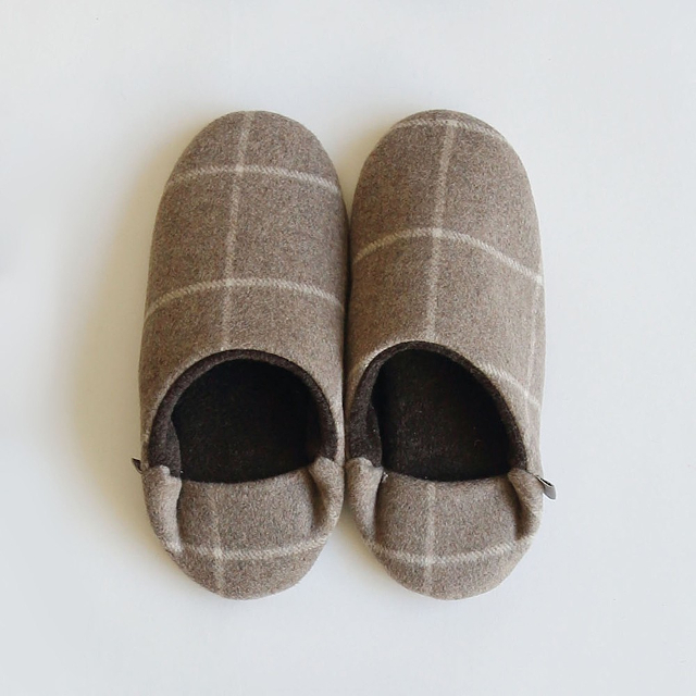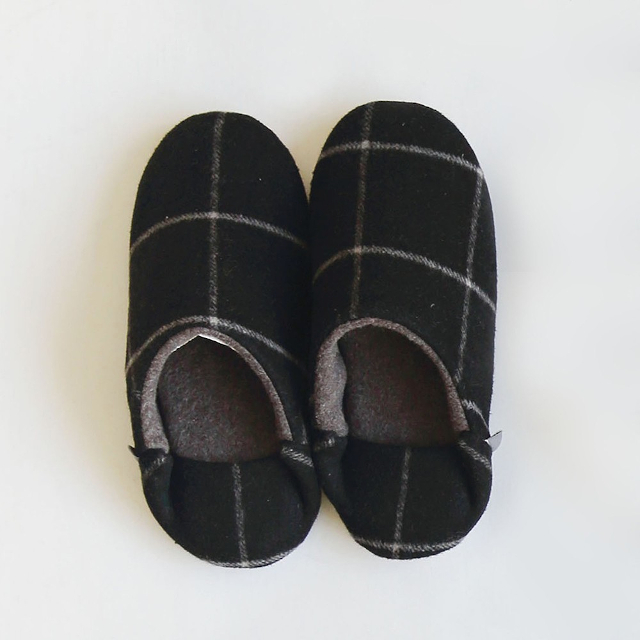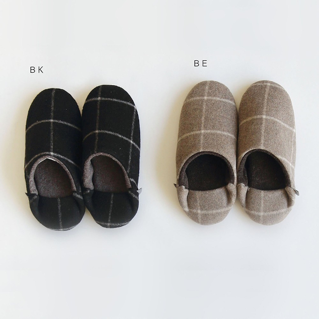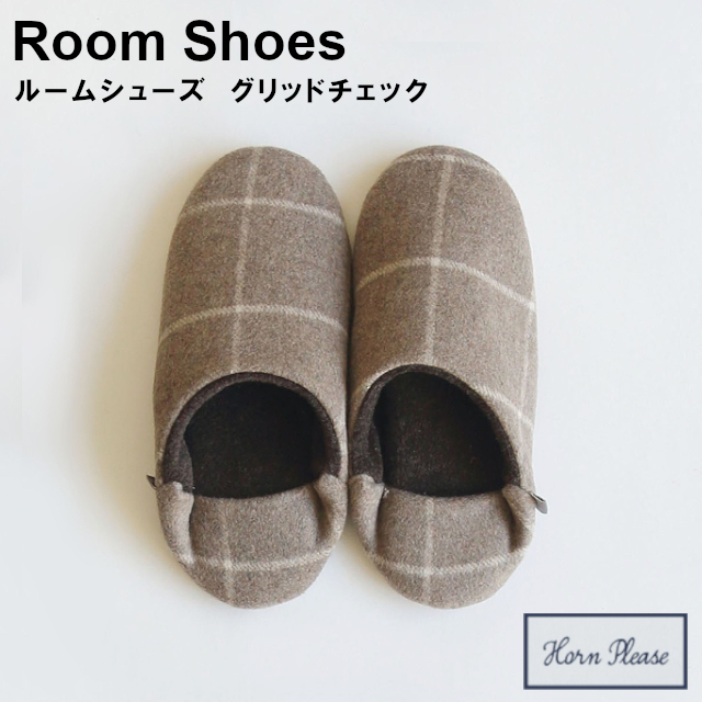 【Horn Please】ルームシューズ グリッドチェック 107643・107642【ルーム シューズ 北欧 室内履き シンプル もこもこ あったか コットン】