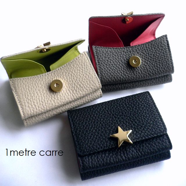 1metre carre アンメートルキャレ 三つ折り財布 星スター シュリンク レザー ミニ BR30738 ベージュ/グレー/ブラック/ゴールド/シルバー/ブルー