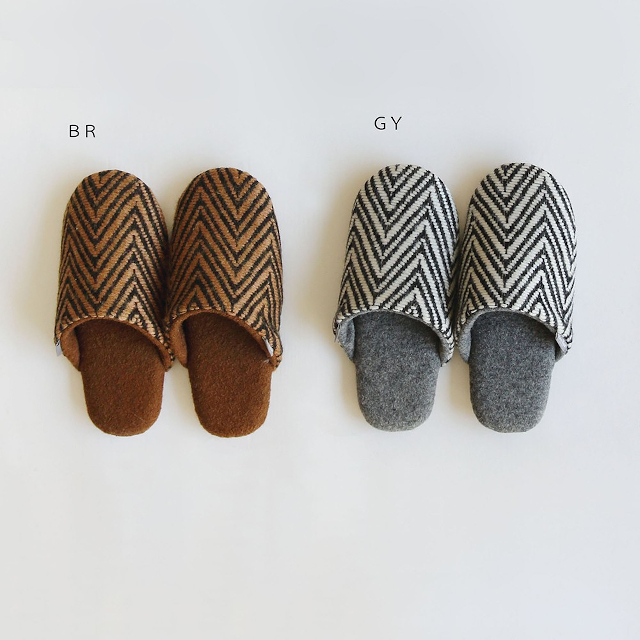 【Horn Please】ルームシューズ クリアリーヘリンボーン 107640・107641【ルーム シューズ 北欧 室内履き シンプル もこもこ あったか コットン スリッパ】