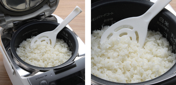●ヘラ部分の表面には特殊な凹凸があり、ごはんが付きにくい構造で風通しが良く、お手入れが簡単です。
