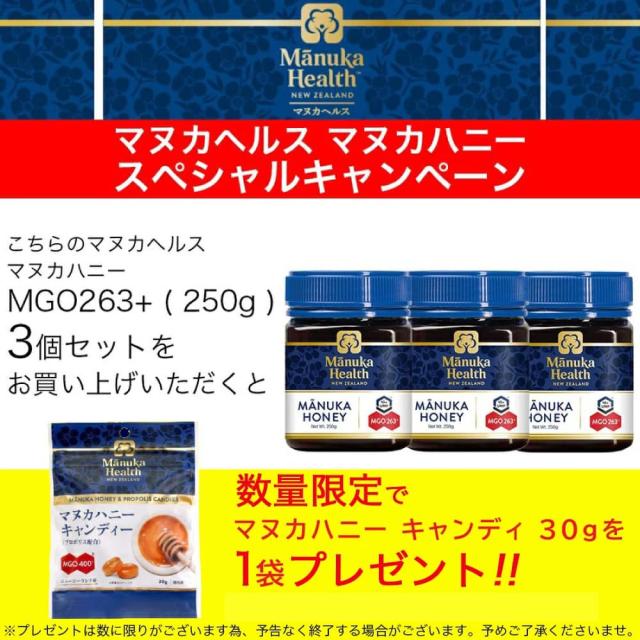 マヌカハニー はちみつ 蜂蜜 マヌカヘルス MGO263 250g 3個セット 旧MGO250 UMF10 ニュージーランド 純粋 日本向け正規輸入品 日本語ラベル 送料無料
