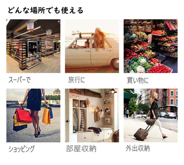 ●街中で目を惹くこと間違いなしの折りたたみ収納できるショッピングバッグです。