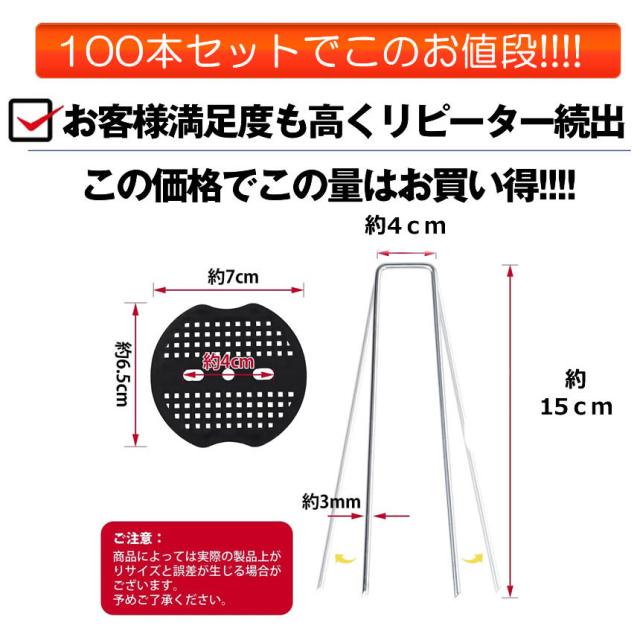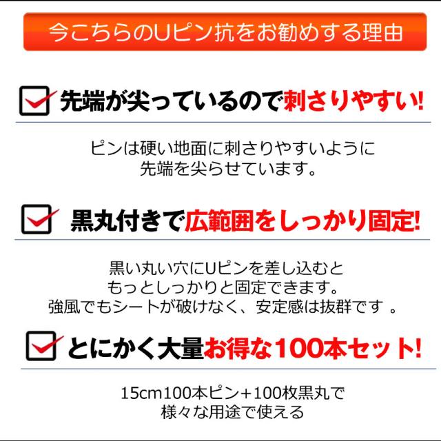 Uピン杭 黒丸付 防草シート ピン 固定ピン 除草シート 100本 固定用 固定 人工芝 おさえピン 押さえピン 15cm 園芸シート